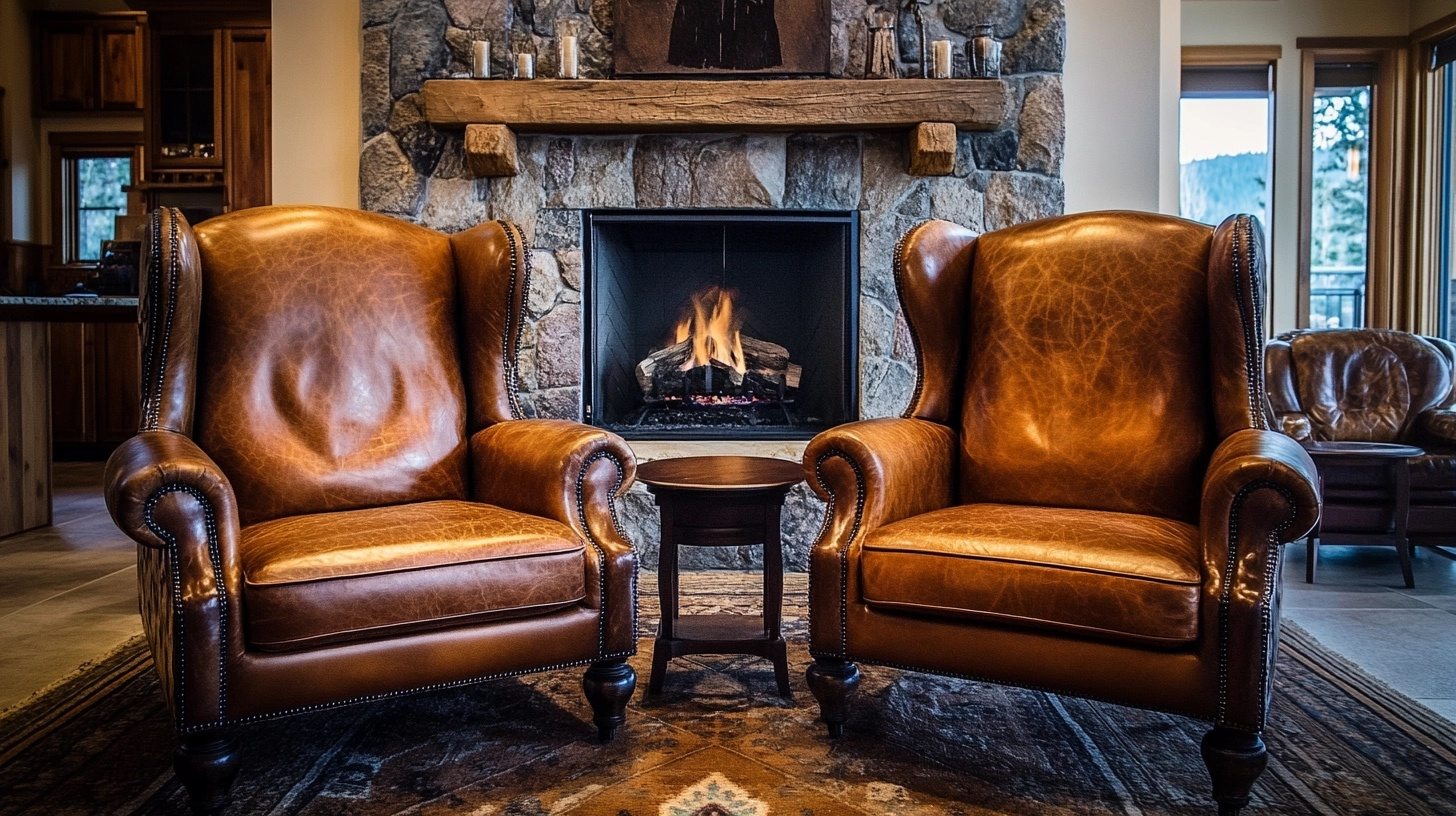 Big, comfortable leather chairs create inviting spots for reading or conversation in western living rooms. These substantial pieces add weight and presence to your space.