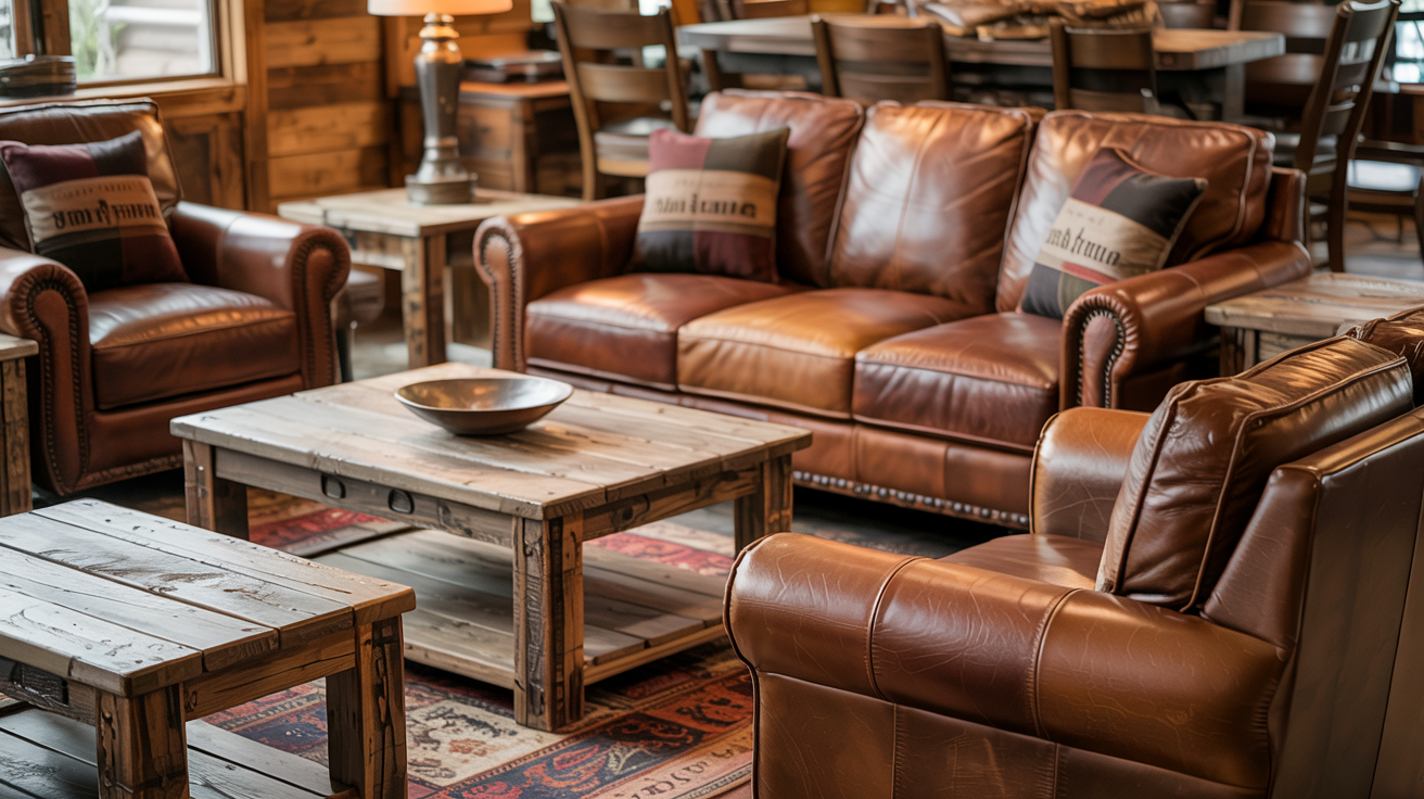 1. Leather Furniture with Distressed Wood Accents