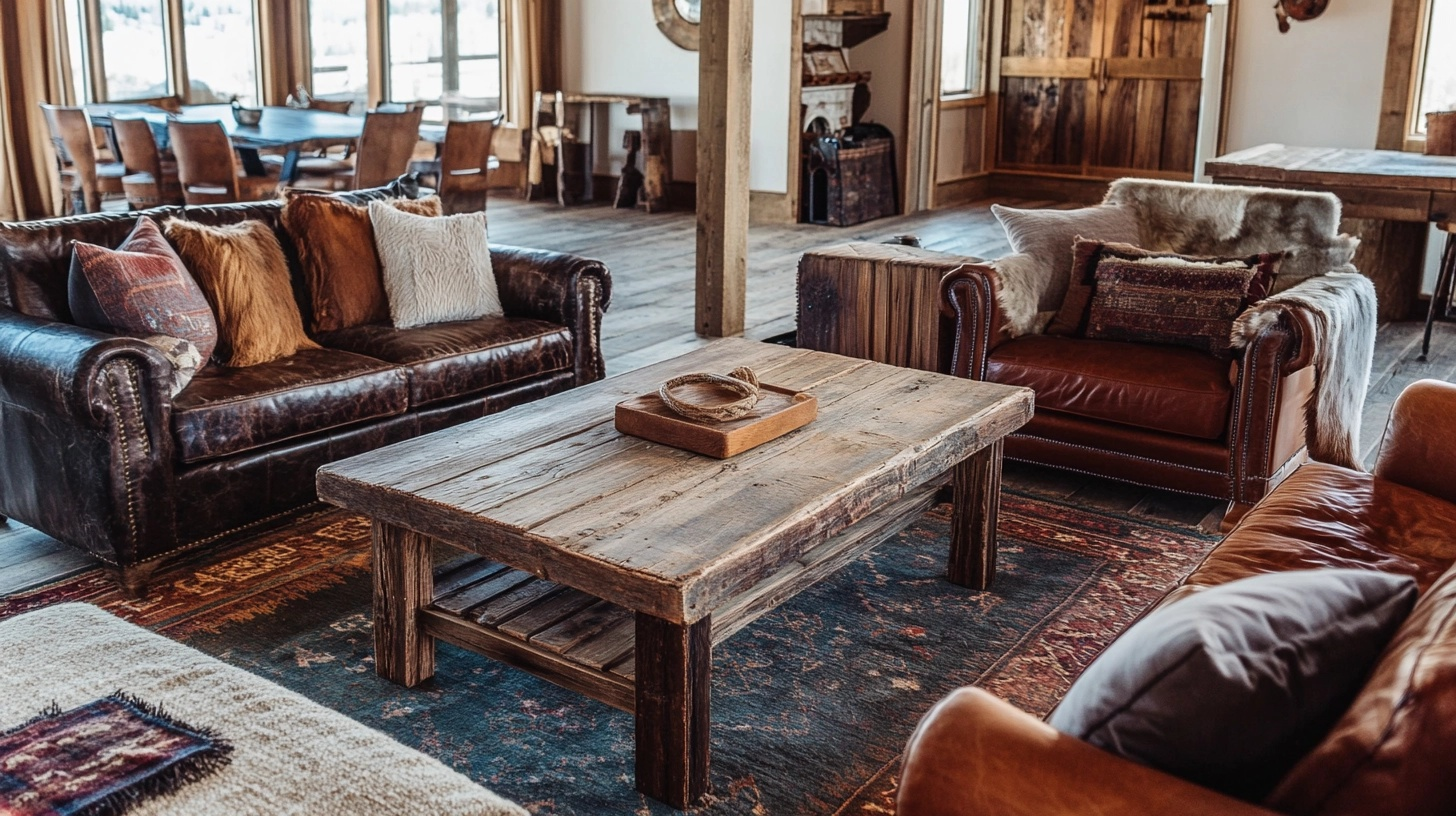 The warm tones of reclaimed wood work perfectly with leather furniture and natural fiber rugs to create a cohesive western look that feels both traditional and timeless.