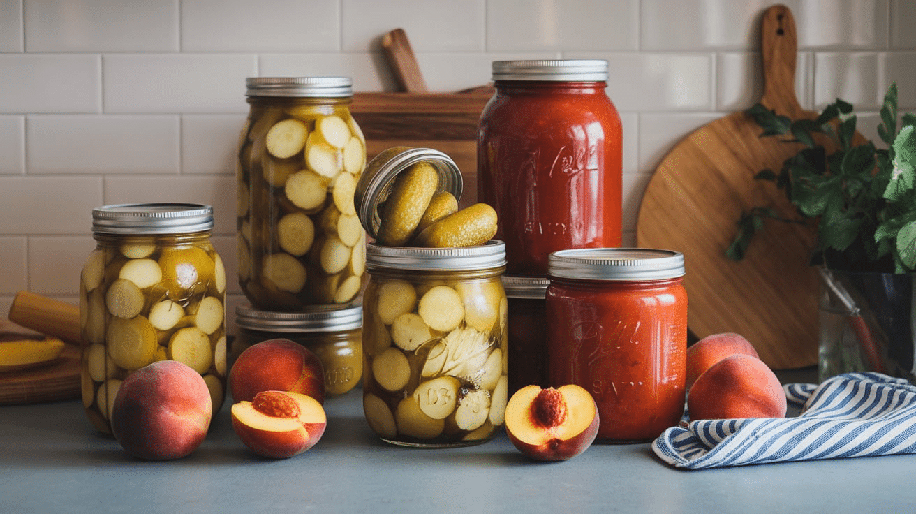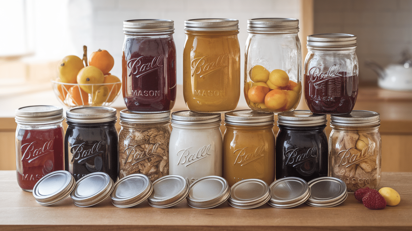 Small half-pint jars work great for jams, while larger quart and gallon sizes can hold soups and bigger batches of preserved foods.