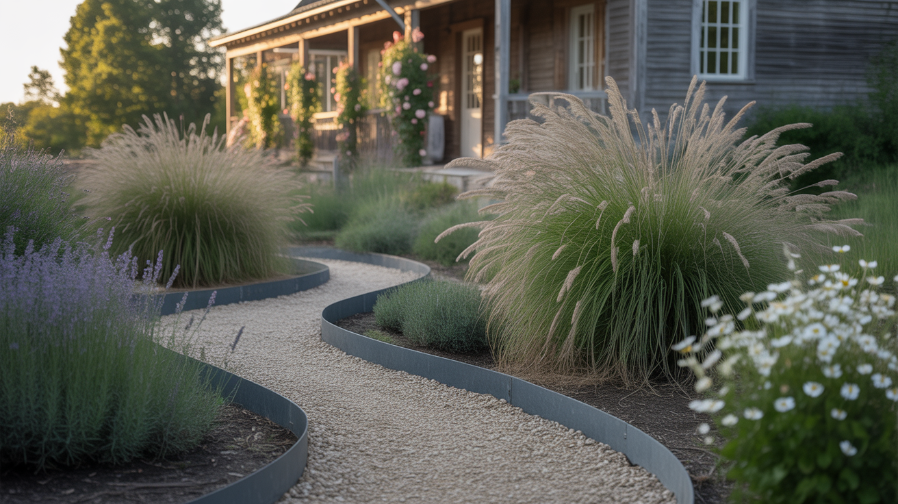 Sustainable, low-maintenance greenery options that replace traditional lawns with prairie-inspired plantings, meadows, and native species that enhance the authentic farmhouse aesthetic:
