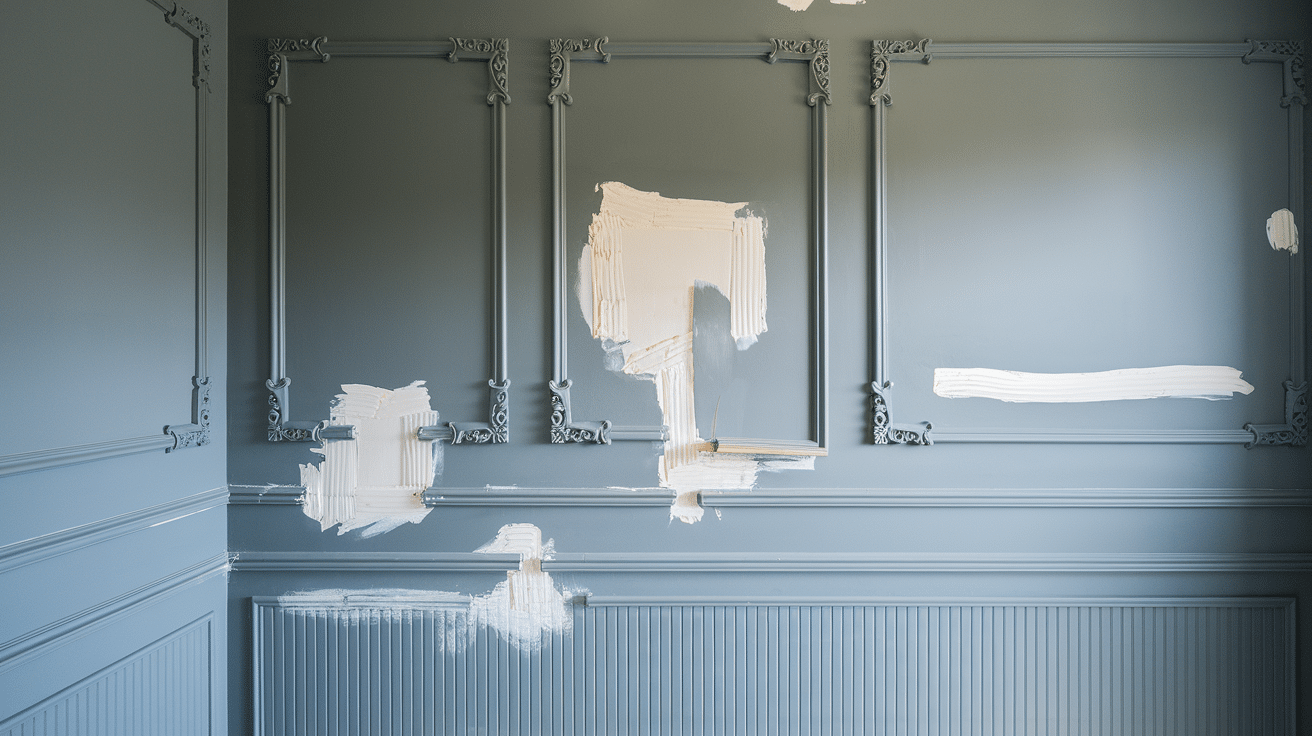 Finish by painting both walls and trim with your chosen colors, applying multiple coats as needed for a clean, professional look.