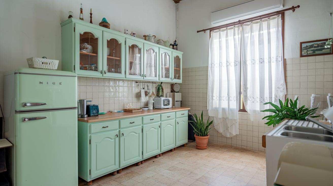 Mint green brings a fresh, soothing ambiance to spaces like kitchens or bathrooms. This light, cool green hue promotes relaxation and helps create a serene environment.