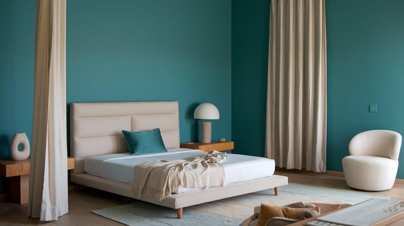 Teal is a balanced blend of blue and green, offering serenity and renewal. It’s a great option for bedrooms or bathrooms, where it can create a calm, restful environment.