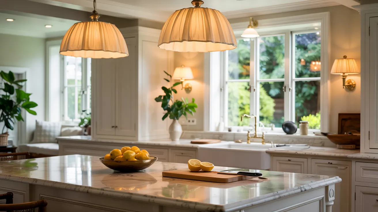 Hang pendants 30-36 inches above islands or counters for proper task lighting without glare. Install sconces beside open shelving to highlight displays while providing ambient light.