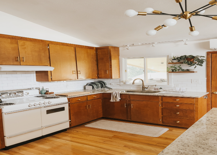 Plywood is a very sustainable material that is resistant to wear and tear. It has no impact on exhibiting any toxins in your home. It is important to check if your plywood was being exposed to the use of formaldehyde, as not all plywood can be eco-friendly. Hence, it is best to check to ensure its longevity and quality thoroughly. It is a classic turnaround to your plain farmhouse kitchen, as plywood amps up the feel of the space.