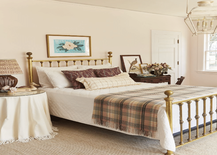 Or, you can use a few different neutral colors in your bedroom. Like the photo above, the neutral colors all come together in the bedroom. Neutral colors are soothing and versatile, and not boring at all.