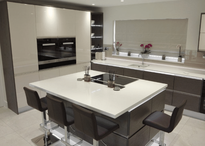 Reclaimed wood is famous for industrial kitchens due to its aesthetic appeal and sustainability. It adds warmth and character to the space, complementing the industrial elements. Sourced from old buildings or structures, reclaimed wood promotes recycling and reduces environmental impact. It can be used for countertops, shelving, or decorative accents, creating a unique and eco-friendly atmosphere. Incorporating reclaimed wood in an kitchen design is a great way to enhance the overall look and embrace sustainable practices.