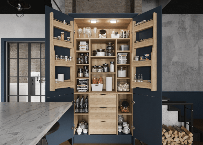 Gone are the days of only neutral tones in pantry cabinets. A bold splash of color is making its way into these spaces, infusing energy and personality. Deep blues, emerald greens, and even rich burgundies are being used to create captivating focal points within the pantry. These colors can be applied to the cabinet doors or even the interior, creating a delightful surprise when the doors are opened.