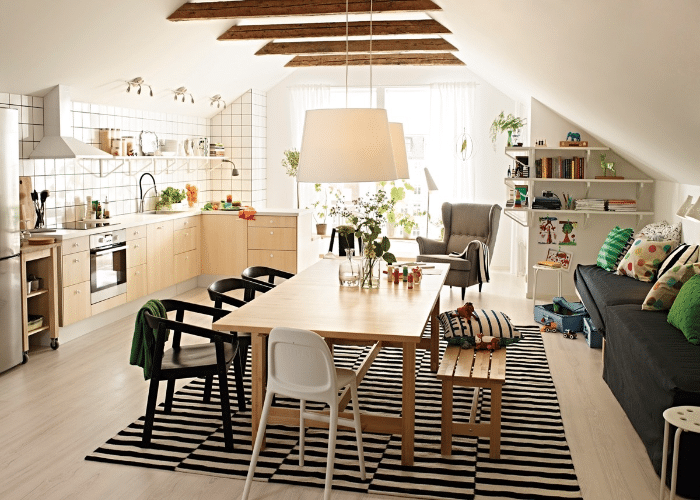 Scandinavian design also welcomes different textures and materials. Touch is an important sensory ability to make sense of your surroundings and allow it to captivate you. Scandinavian interior design proves to be very tactile. Textures can be included in your dining space in the form of wall art furniture and different details in the interiors. Materials such as wool, cashmere, wood, and leather are important additions to interior design. Mats made of wool, wooden cabinets, and textured walls can be a great way to amp up your interiors.