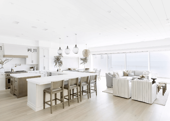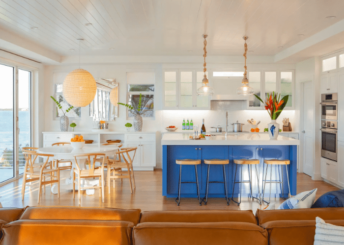 Remember that you don’t need to stuff your open kitchen living room with tons of furniture because a room should feel warm, spacious, and inviting. Play with accessories, colors, and fabrics, and refer to this guide for ideas.