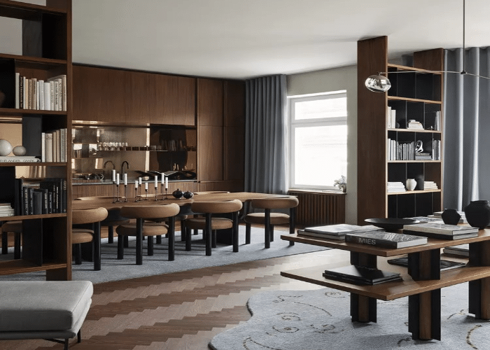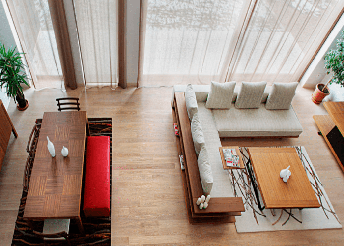 Opt for furniture that has low or open backs, like open-back bookshelves or sofas with slender frames. This maintains a visual connection throughout the space and indicates separate areas according to the purpose of the area.