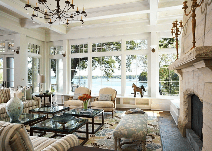 To add a touch of freshness and vibrancy, incorporate shades of blue, green, or turquoise reminiscent of the water and nature surrounding your lake house. You can introduce pops of color through decorative accessories like throw pillows, rugs, and artwork.