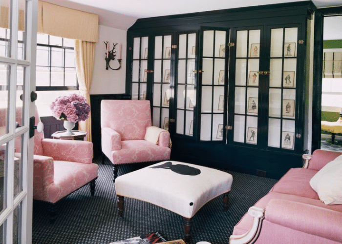 These three colors are often paired together to give a vintage vibe. But this can also be a tricky color combination. It requires a perfect proportion of white and black so that the pink couch is not overpowered in the living room. This color combination will give a bold look.