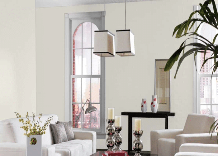 Alabaster is a warm white and has a yellow undertone. It will suit you if you are looking for paint that is bright but not too much. The paint exudes its full potential when it is painted facing north. It brings cold lighting to the room. When faced south, the warmth of the paint will gradually increase.