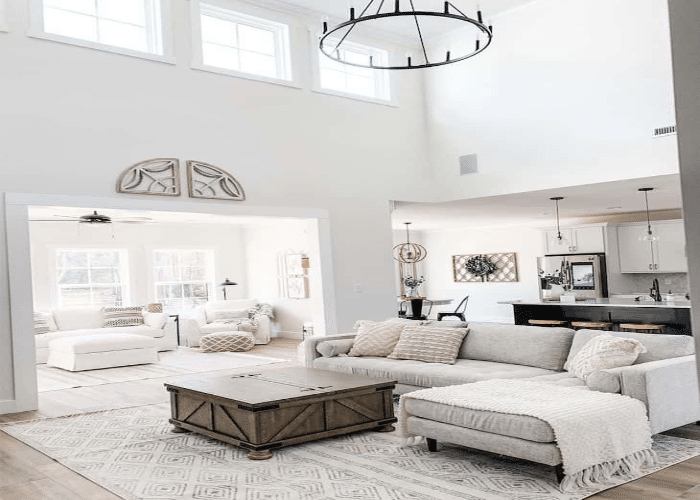 The room will radiate peace and tranquility with the white tone. The warm color makes the living room look fresh, clutter-free, and airy.