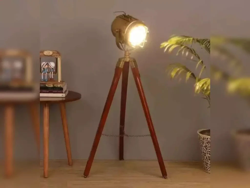 Such a floor lamp in brass finish will exude a vintage vibe. They cast a downward light, so you can place a portrait on a table and direct the light towards it.