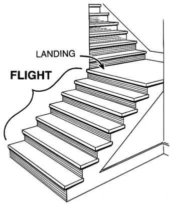 A flight of stairs is a set of planks or steps between two floors or landings. By definition, these stairs need to have the same rise and run per tread without interruption. The phrase “flight of stairs” derives from the French saying- “to fly up the stairs.” This simply means that someone can ascend or descend stairs quickly and without interruption.