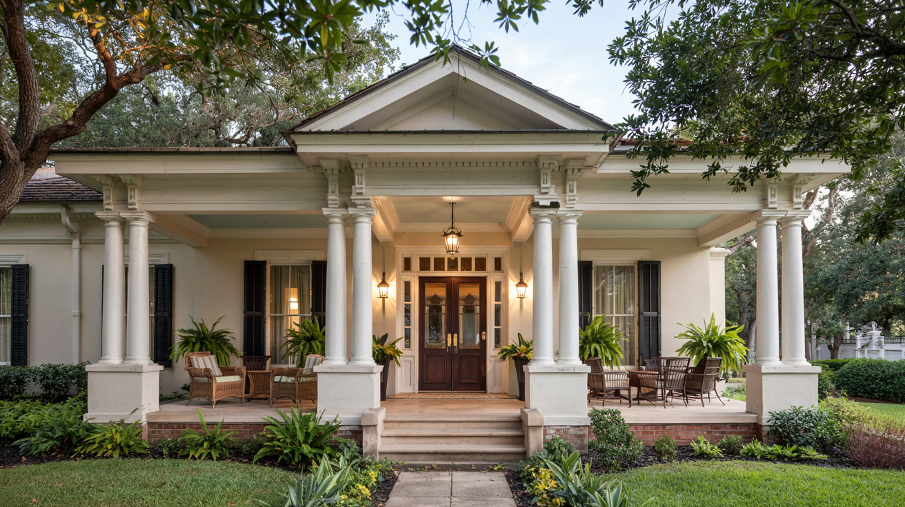 The style typically matches the home’s overall architecture; you’ll see them on Colonial, Greek Revival, and Southern-style homes most commonly.