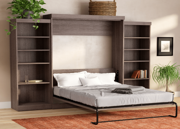The quality of materials used to make a Murphy bed plays a major role in determining its price. Beds with built-in ambient reading lighting, pre-installed charging outlets for your gadgets, and safes to fulfill your organizational needs might burn a bigger hole in your pocket than basic Murphy beds.