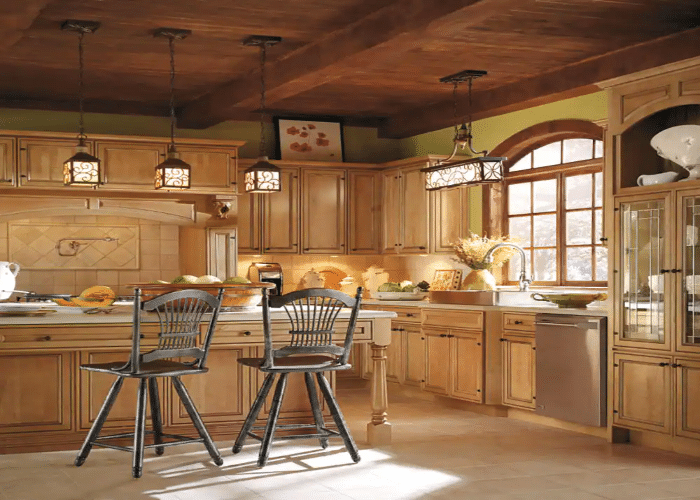 The fresh and natural feel is the first attractive feature of this classic kitchen design. Here, the contrast is created with light and dark shades to create the balance. One more value-added feature compared to the modern kitchen design is durability. It will stand through the generations sometimes if you take the proper care, unlike the modern kitchen, which needs continuous change for every season.