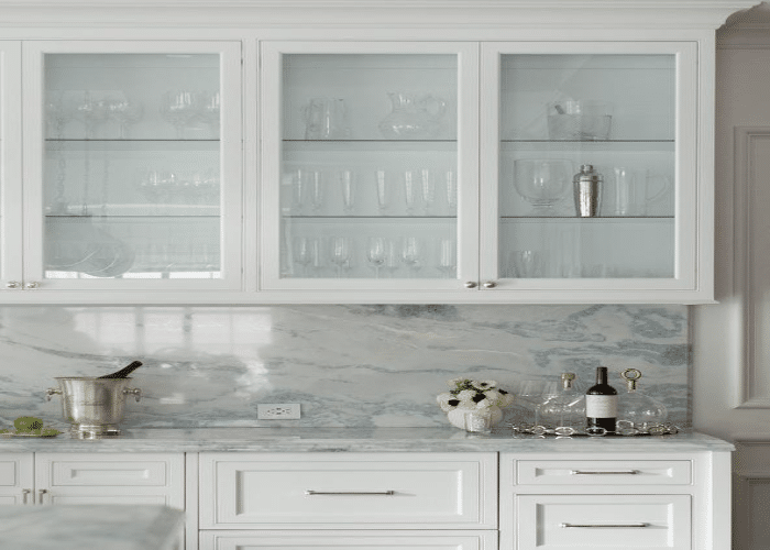 While this might raise some eyebrows, our experts are of the opinion that when you install a butler’s pantry cabinetusing marble, you do not necessarily make it a separate entity of the house. In fact, these are the best solution when you also have walls made of marble. That way, these gorgeous cabinets integrate seamlessly with their surroundings. The use of marbles also makes the space appear much larger than they actually are. You can add some colors through the pots, pans, cutlery, dishware, etc. You can use glass or wood for the shelves and covers of the cabinets.