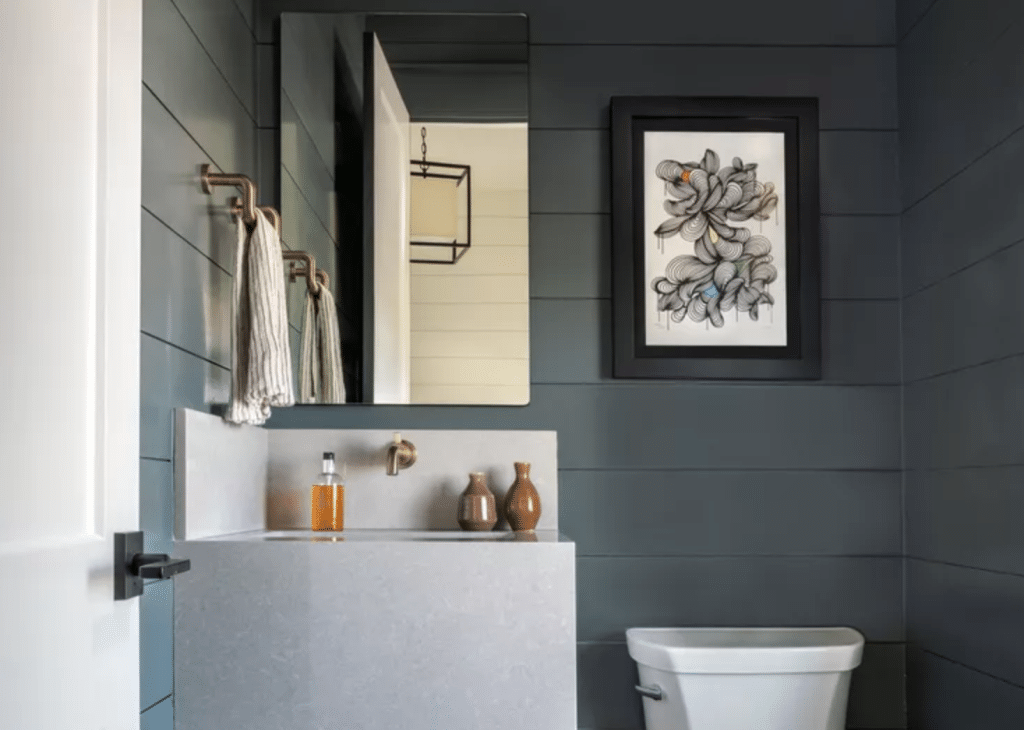 Benjamin Moore’s Lead Gray, being a dark color, perfectly goes well with the small space.