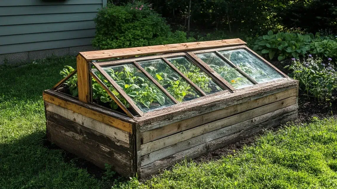 Cold frames help young plants grow when it’s still chilly. Use old windows as the top part to let sunlight in and keep the cold out.