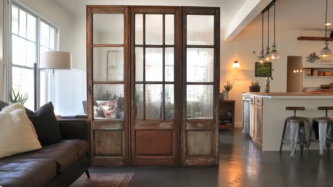 Take two or three window frames and connect them with small hinges to make a foldable divider. It’s perfect for splitting up a room or hiding a cluttered corner.