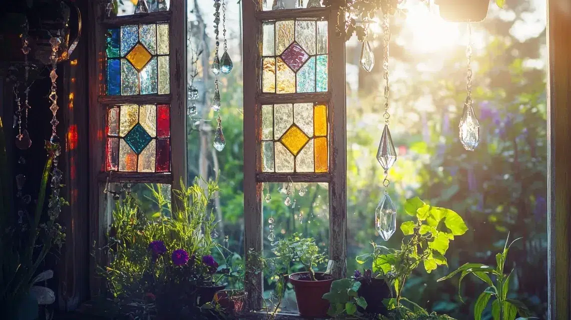 Hang small crystals, beads, or pieces of stained glass from the window’s panes using clear fishing line or thin wire. When the sun shines through, it sends colorful light all over the room or garden.
