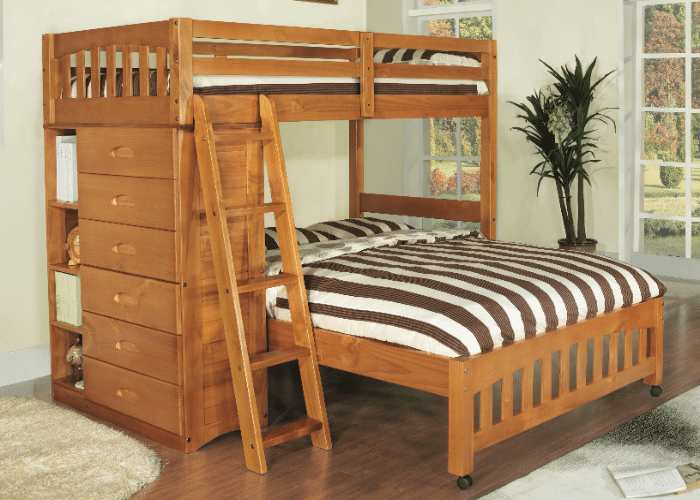 If the ceiling of your living space is high enough, using the loft bed and other modest furniture like this are wiser choices. Loft beds offer you either two beds in one or enough space to create a mini house or great storage space beneath it.