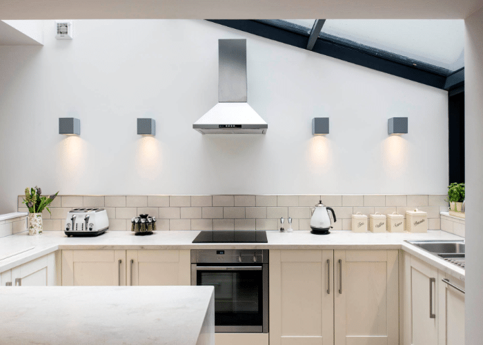 Wall sconces have a timeless appeal. The main advantage of installing wall sconces in a kitchen is that they have the unique ability to bounce lights off walls to create an inviting atmosphere and also offer focused lighting wherever needed.