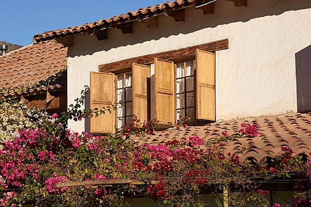 Traditional hacienda homes use red rooftop tiles, adobe, and hand-painted floor tiles. These raw construction materials are often of premium quality and are meant for houses in warmer regions.