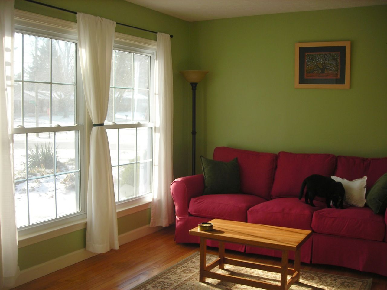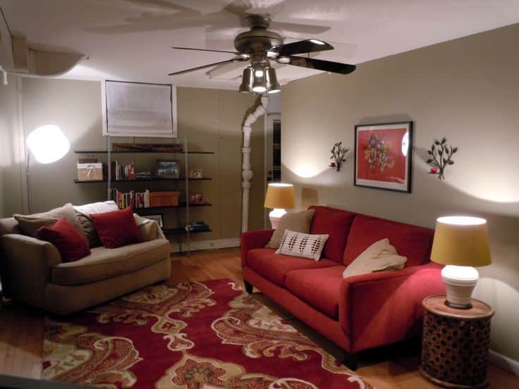 A white shade is simple but a good choice for your living room wall. When it comes to your red sofa, you must consider this color.