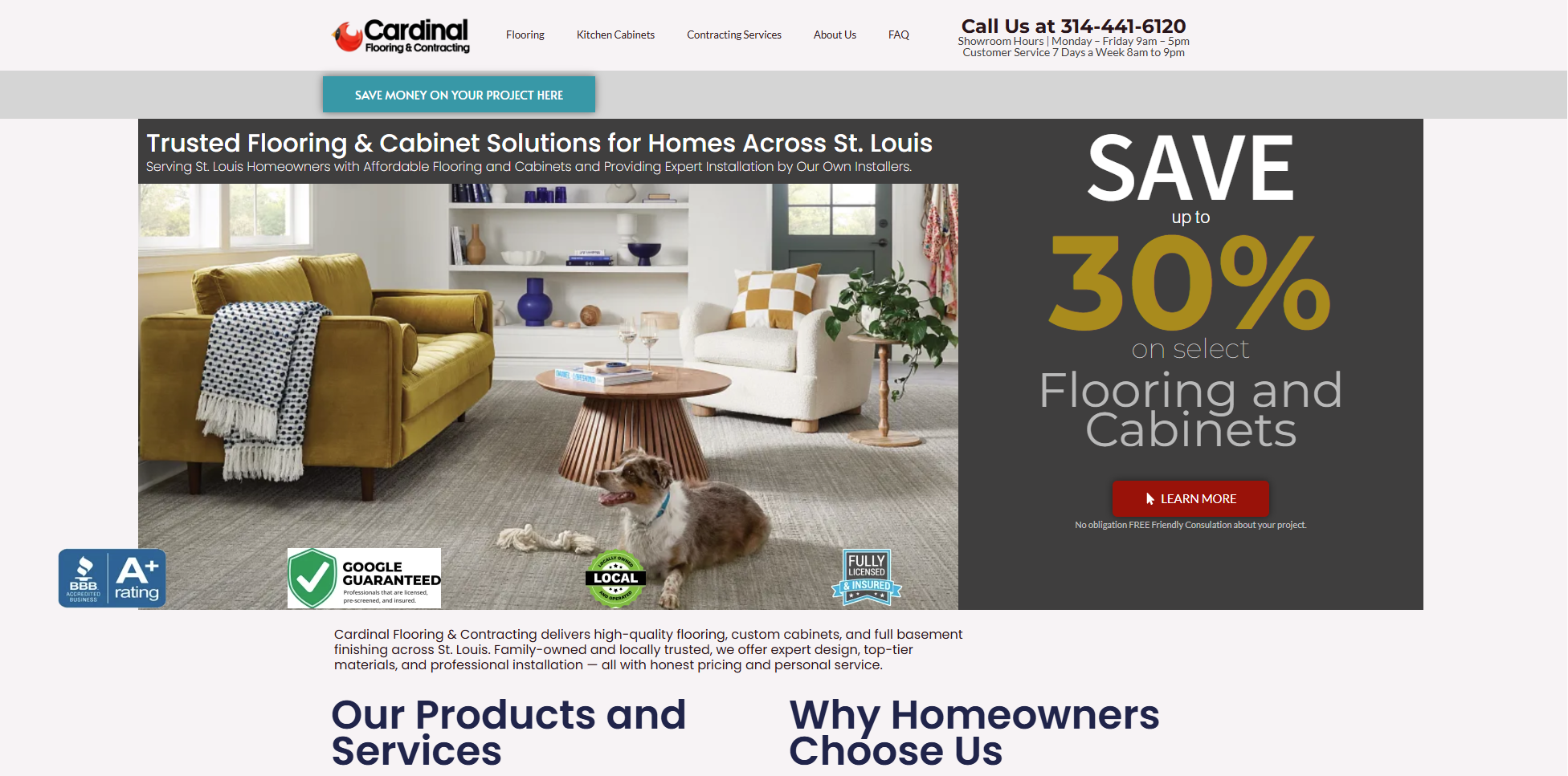Cardinal Flooring and Contracting operates as a flooring installer and a remodeling contractor, serving much of the St. Louis metro area. Its broader scope appeals to homeowners in the market for natural timber installation, coordinated with other renovation work.