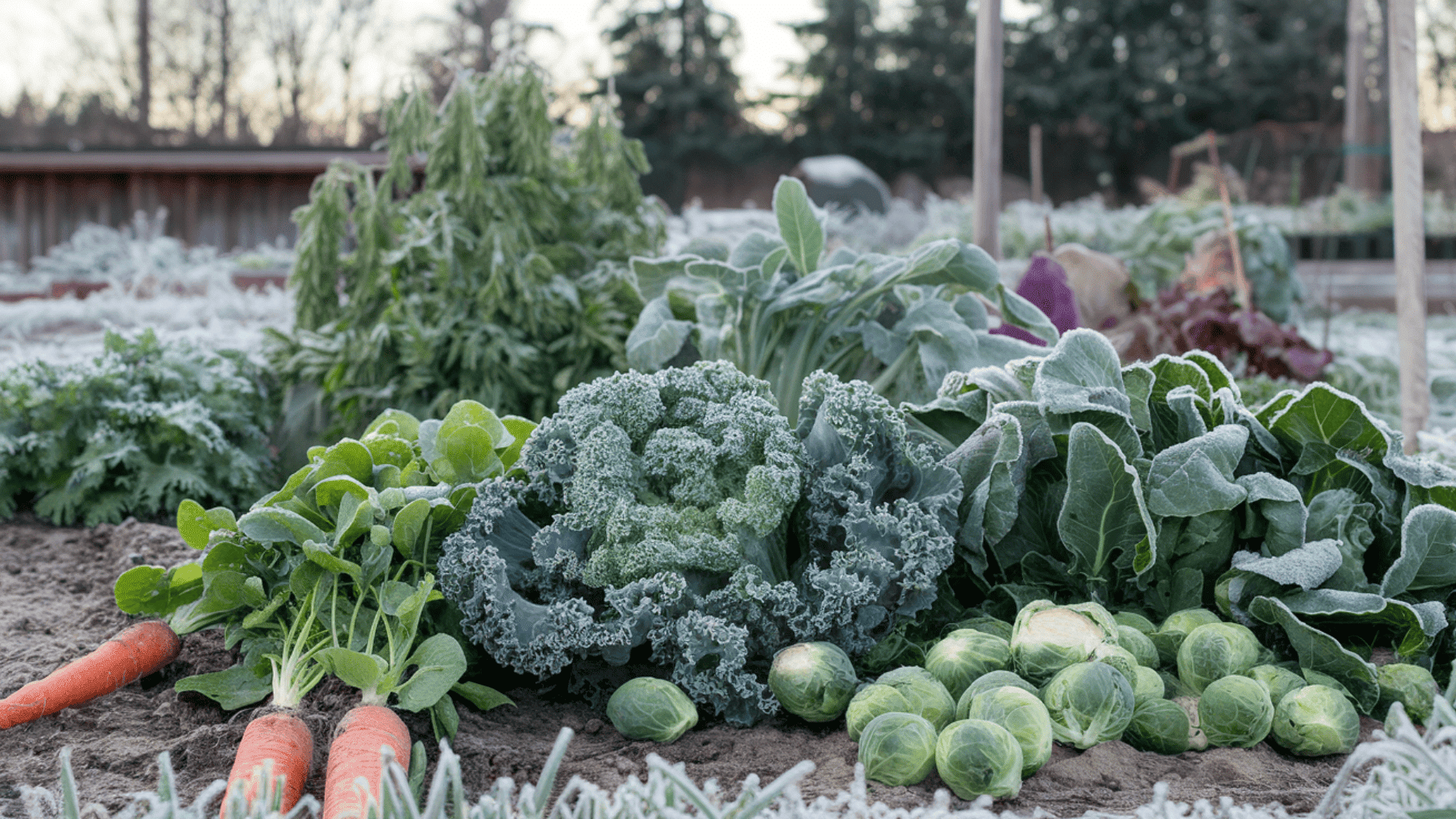 Root vegetables such as carrots, beets, and turnips grow underground and stay insulated from frost. Hardy crops like broccoli, Brussels sprouts, and cabbage can withstand freezing conditions.