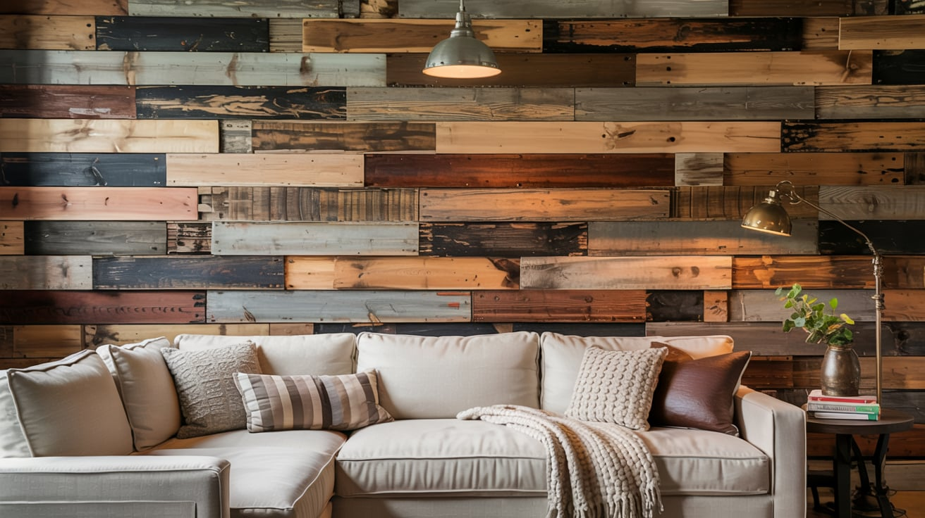Mix different wood tones for added depth and interest. This option works especially well in rustic, industrial, or modern farmhouse designs.