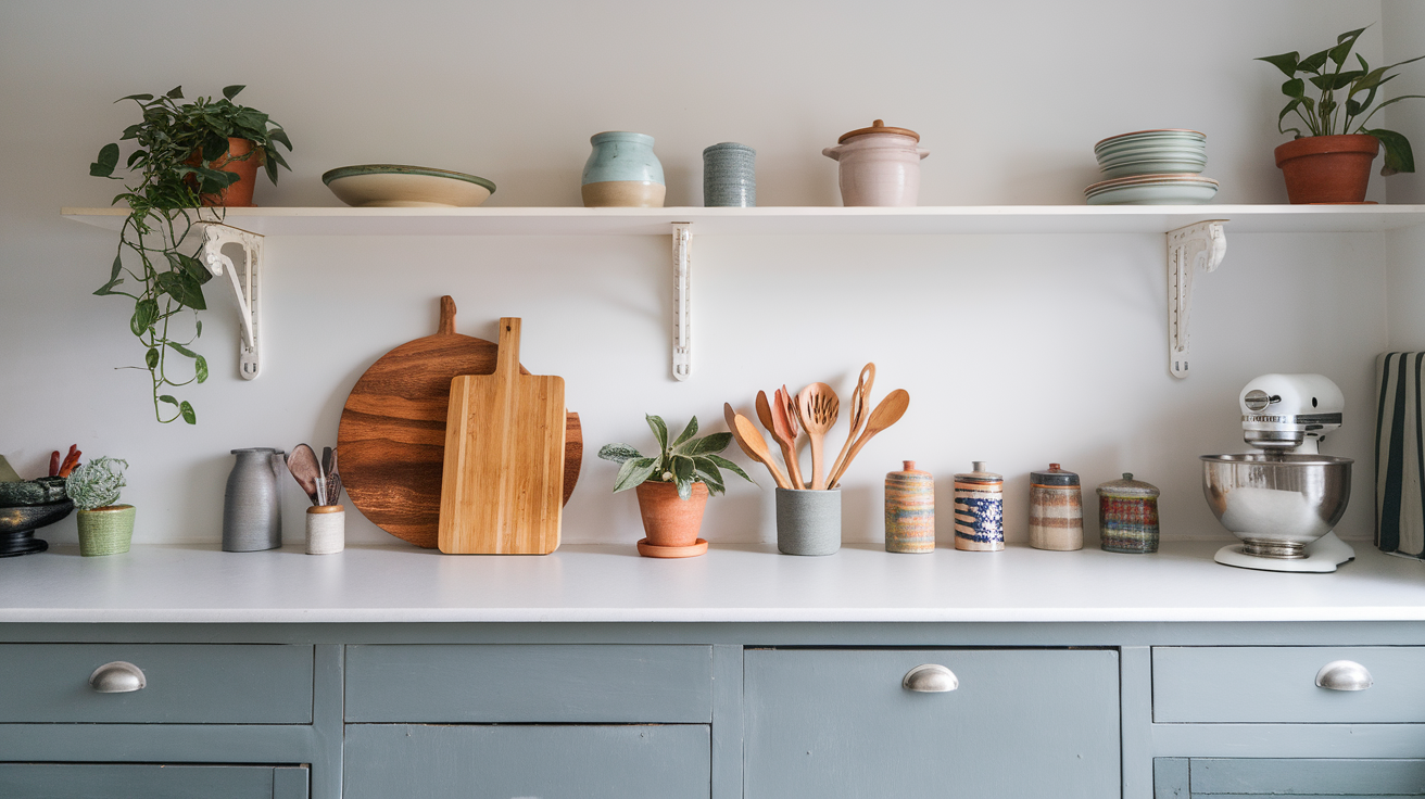A colorful mixer or kettle can become a focal point. Stick to just a few well-chosen items to keep the clean look. Think about what you use daily and make those items part of your design.